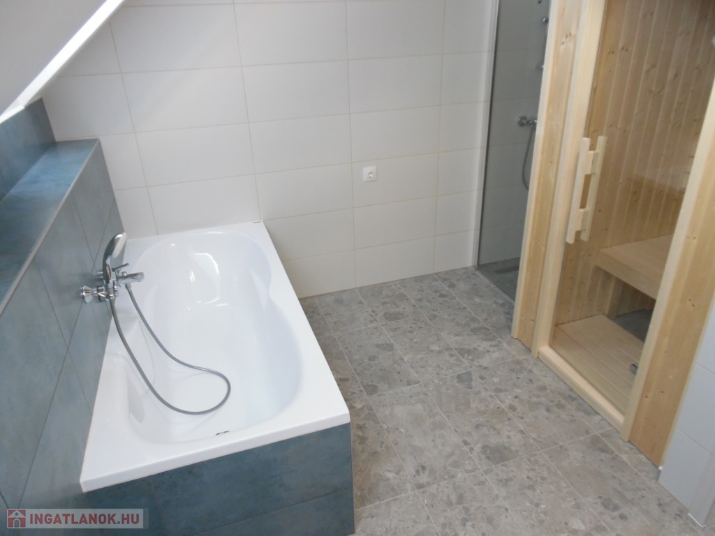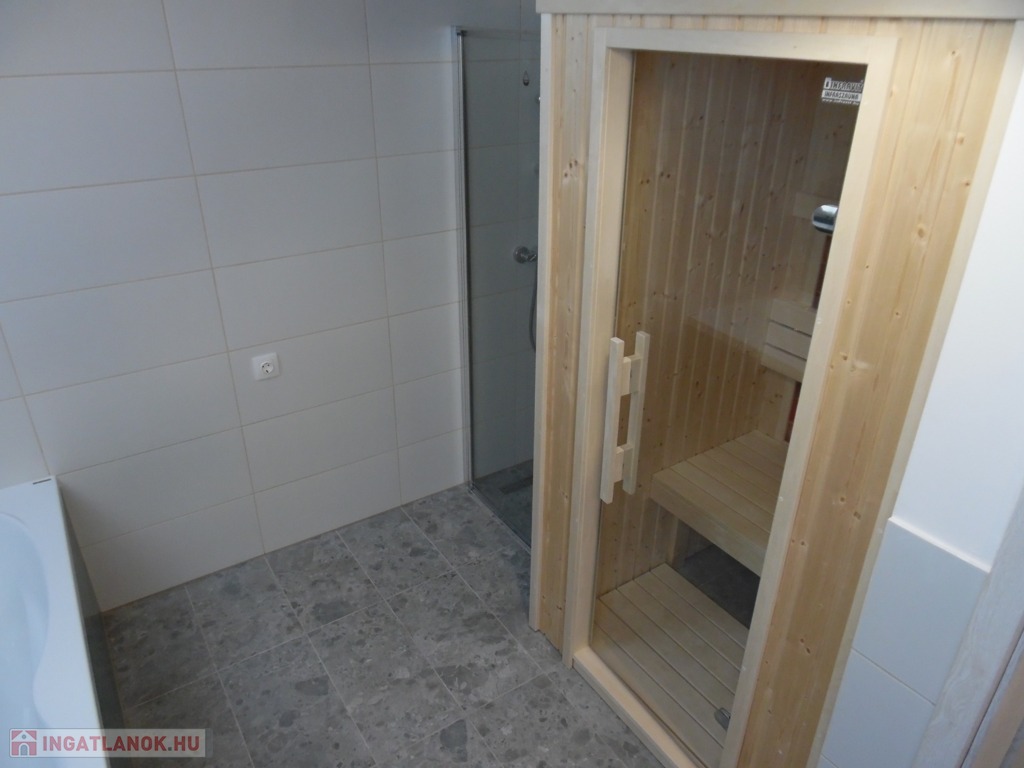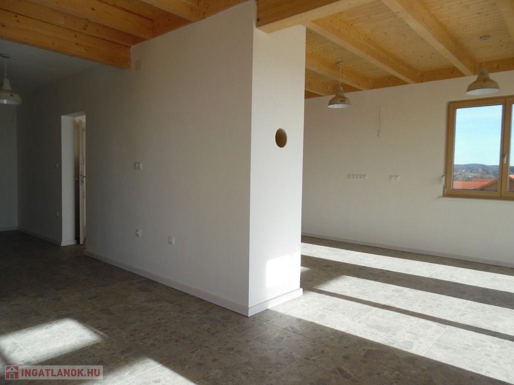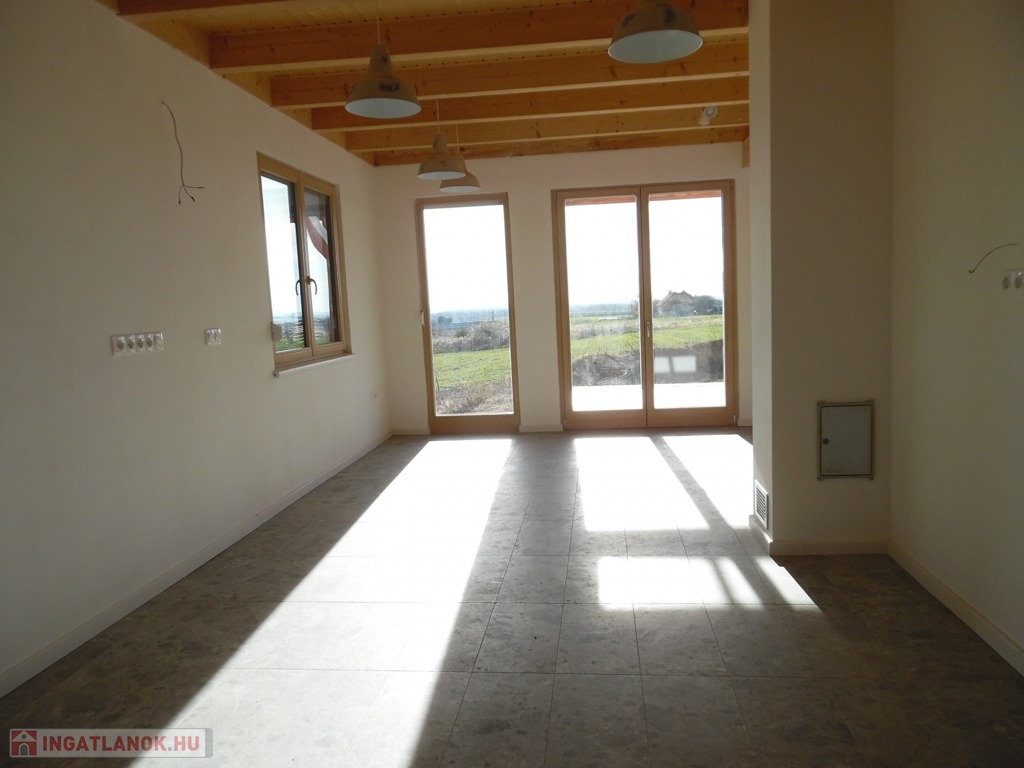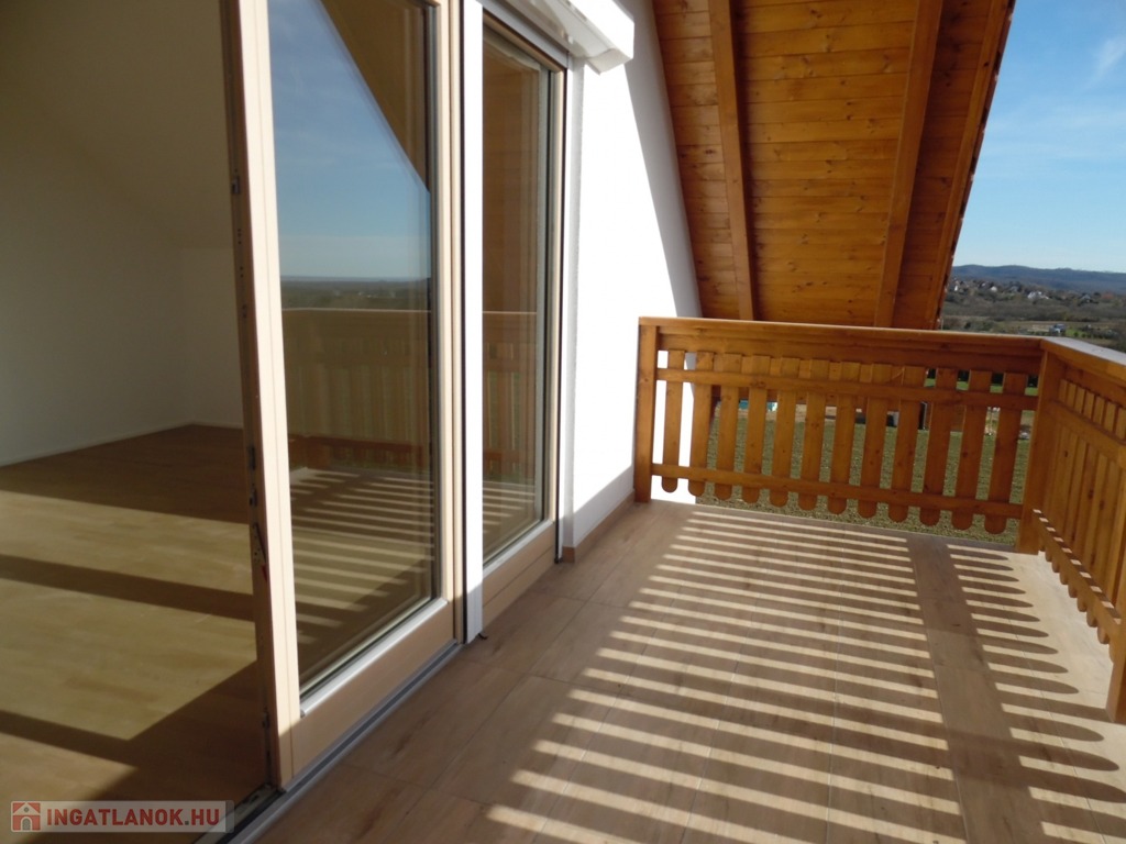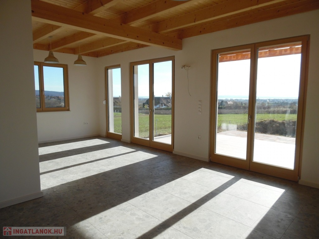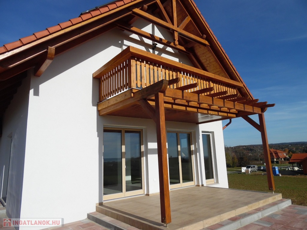 Zala megye, Cserszegtomaj 160m2-es újépítésű családi ház balatoni panorámával eladó. A modern, igényesen tervezett családi ház földszintjén egy teraszos nappali, konyha étkezővel, kamra, szélfogó, háztartási helyiség, és fürdőszoba, míg a tetőtérben további 3 szoba, melyből az egyik erkélyes, fürdőszoba finn szaunával és közlekedő került kialakításra. Az ingatlan melegéről elektromos fűtés gondoskodik fűtőkádas padlófűtéssel és NOBO fűtőpanelekkel, 3db külön körös termosztáttal. Az elektromos áramot napelem rendszer biztosítja (17db-5kW), mely engedélyeztetés nélkül akár a duplájára is bővíthető. A 3rétegű, redőnyös és szúnyoghálóval felszerelt ablakokból örök panoráma nyílik a Balatonra, Keszthely városára, és a környező dombokra egyaránt. A családi házban a klíma, a riasztórendszer, kaputelefon és a vízlágyító rendszer előkészítése megtörtént. A nappaliban engedélyezett kémény teszi lehetővé cserépkályha, vagy kandalló beépítését. A 2000m2-es telken elhelyezkedő családi ház leendő tulajdonosainak dupla, közművekkel, elektromos kapuval ellátott garázs (2X20m2) biztosítja a gépjárművek elhelyezését. A szigetelt, tehermentes ingatlan vételára a tereprendezést is tartalmazza