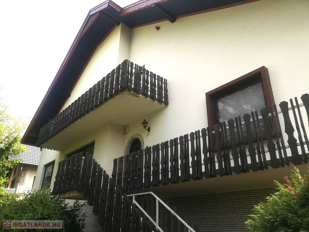 Zala vármegye, Zalaegerszeg, 530m2-es családi ház eladó. A zalai megyeszékhelyen, Alsóerdő közelében található ingatlan 1897m2-es, parkosított telken helyezkedik el. Az udvaron vízforgatós medence, kerti kiülők, szaletli, stb. szolgálja az ott tartózkodók kikapcsolódását. A 80-as évek elején épült, tehermentes ház garázsszintjén a duplagarázson kívül kazánház, 2 tágas tároló, lépcsőház, közlekedő, szauna, konyha és borozó, a fogadószinten nagyméretű, légkondicionált, teraszos nappali, két erkélyes szoba, fürdőszoba, lépcsőház, közlekedő, konyha étkezővel és kamra, az emeleten további négy szoba, (melyekből kettő erkélyes), gardrób, közlekedő, lépcsőház és fürdőszoba, végül a beépített tetőtérben társalgó, tároló és konditerem került kialakításra. A bútorozott ingatlan melegéről gáz-, és vegyes tüzelésű kazán gondoskodik, radiátoros hőleadókkal.