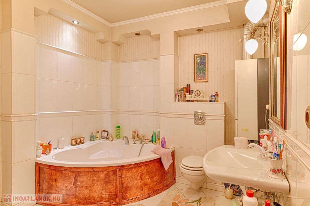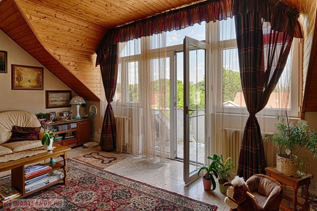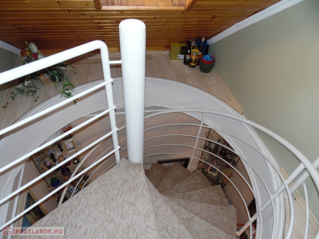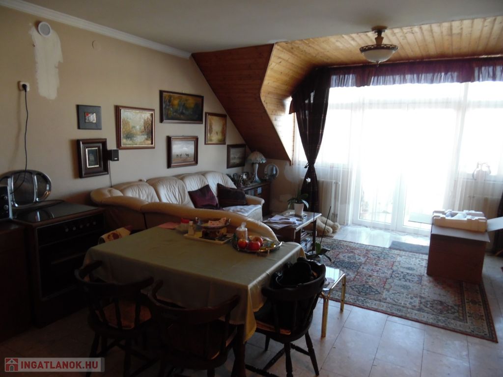 Zala megye, Zalaegerszeg 81 m2-es hasznos alapterületű lakás eladó. A zalai megyeszékhely belvárosában, a Mártírok útján, harmadik emeleti, belső kétszintes lakás eladó. Az erkélyes ingatlan a 4 szintes társasház harmadik emeletén található. A fogadószinten szélfogó, tágas nappali+konyha+étkező, fürdőszoba és kamra került kialakításra. Innen csigalépcsőn jutunk a tetőtérbe, ahol egy közlekedő, fürdőszoba, és 3db háló fogad minket, melyből az egyik jelenleg gardróbként funkcionál. A kilencvenes évek közepén épült, tehermentes lakás melegéről gáz-cirkó fűtés gondoskodik. A szigetelt épület kelet-nyugati tájolású, a lakáshoz a zárt udvarban gépkocsibeálló is tartozik.